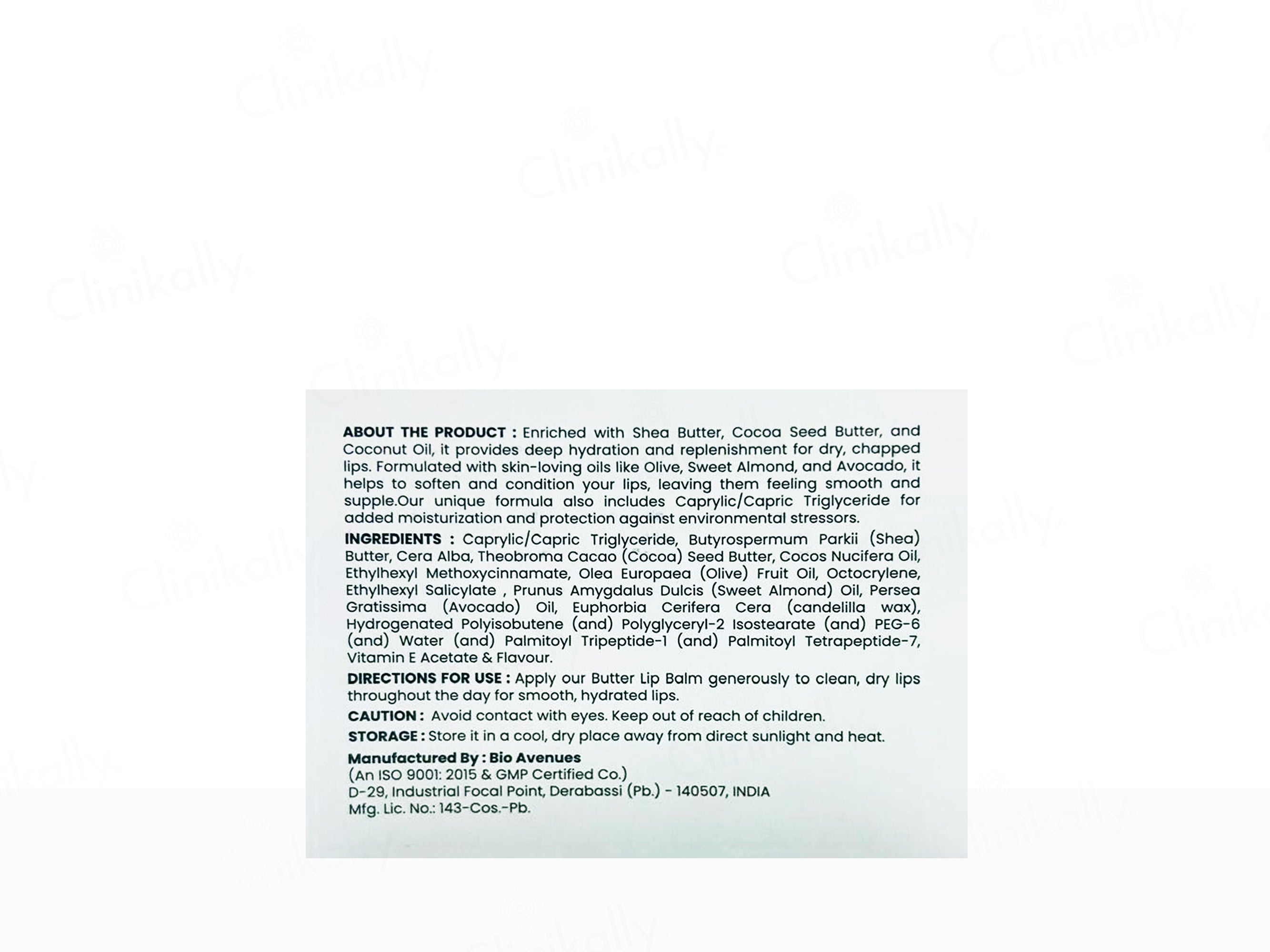 Lipedge Butter Lip Balm SPF 15 provides deep hydration and intensive care for dry, chapped lips with the nourishing power of Shea Butter, Cocoa Seed Butter, and Coconut Oil. Enhanced with Olive, Sweet Almond, and Avocado oils, this buttery formula keeps lips soft, supple, and protected against environmental stressors. Infused with SPF 15, it offers daily sun protection while Palmitoyl Peptides support smoother, healthier-looking lips. The lightweight texture glides effortlessly for long-lasting comfort and radiance.