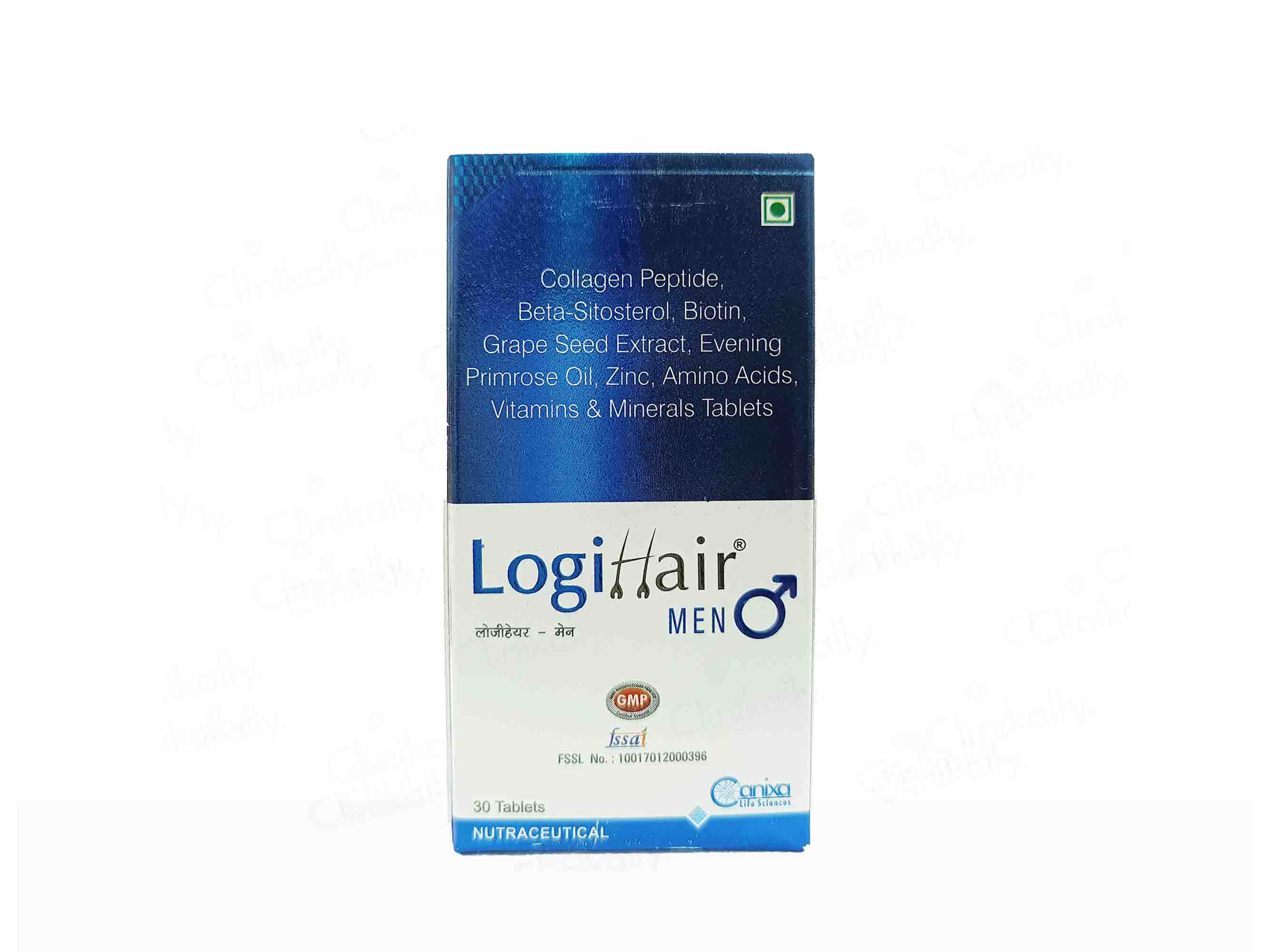 Logihair Men Tablet is a carefully crafted dietary supplement designed to boost hair health specifically for men. This formula features a blend of collagen peptide, beta-sitosterol, biotin, grape seed extract, green tea extract, methionine-bound zinc, amino acids, and vital vitamins and minerals. It's tailored to address men's unique hair needs and promote healthier and fuller hair growth.