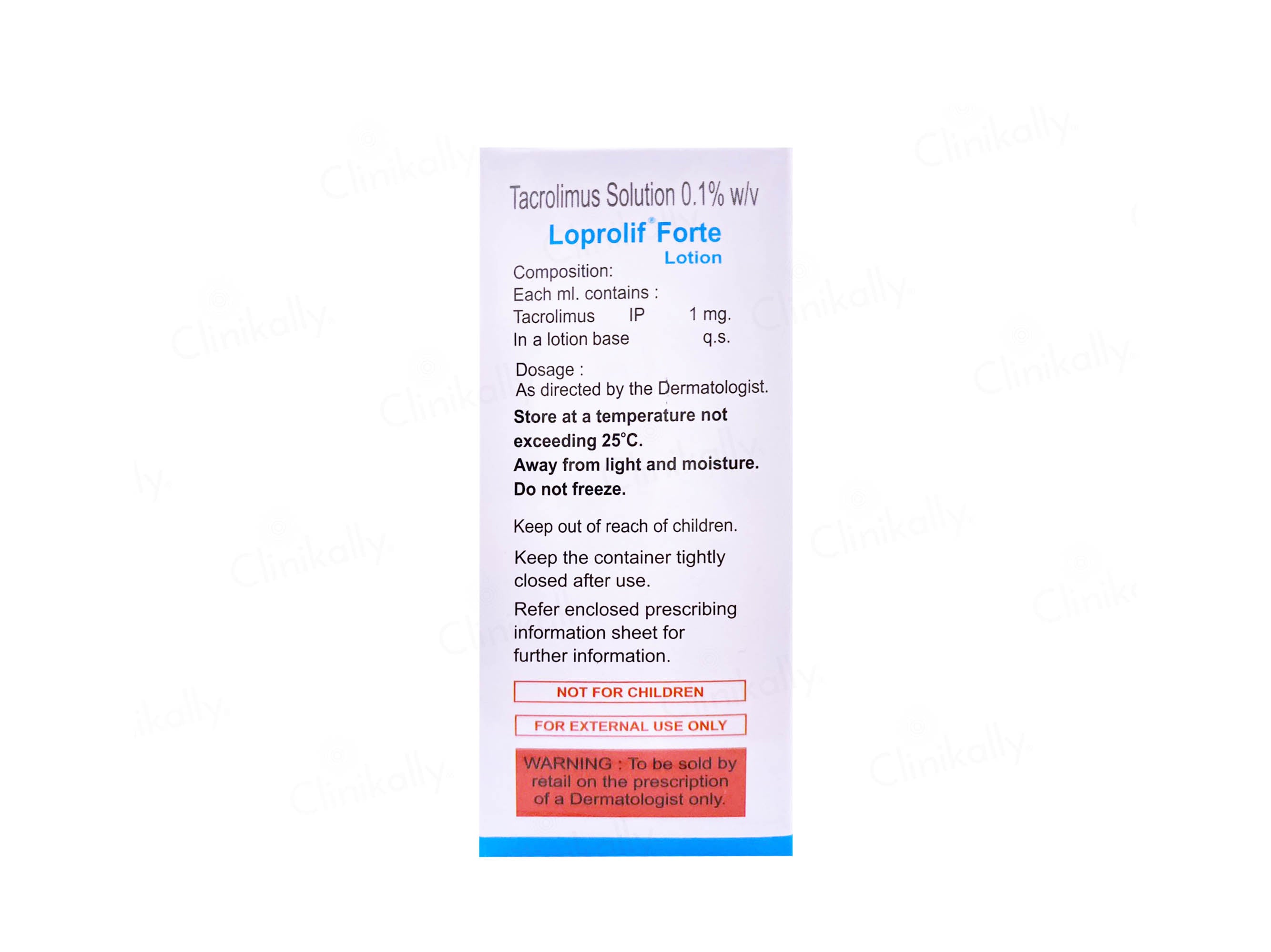 Loprolif Forte Lotion is a potent topical medication used to treat skin conditions like psoriasis and vitiligo. Its active ingredient, tacrolimus, works by suppressing the immune response in the skin, reducing inflammation and promoting healing. This Lotion is clinically proven to effectively manage symptoms and improve skin appearance. Experience relief and restore skin health with Loprolif Forte Lotion.