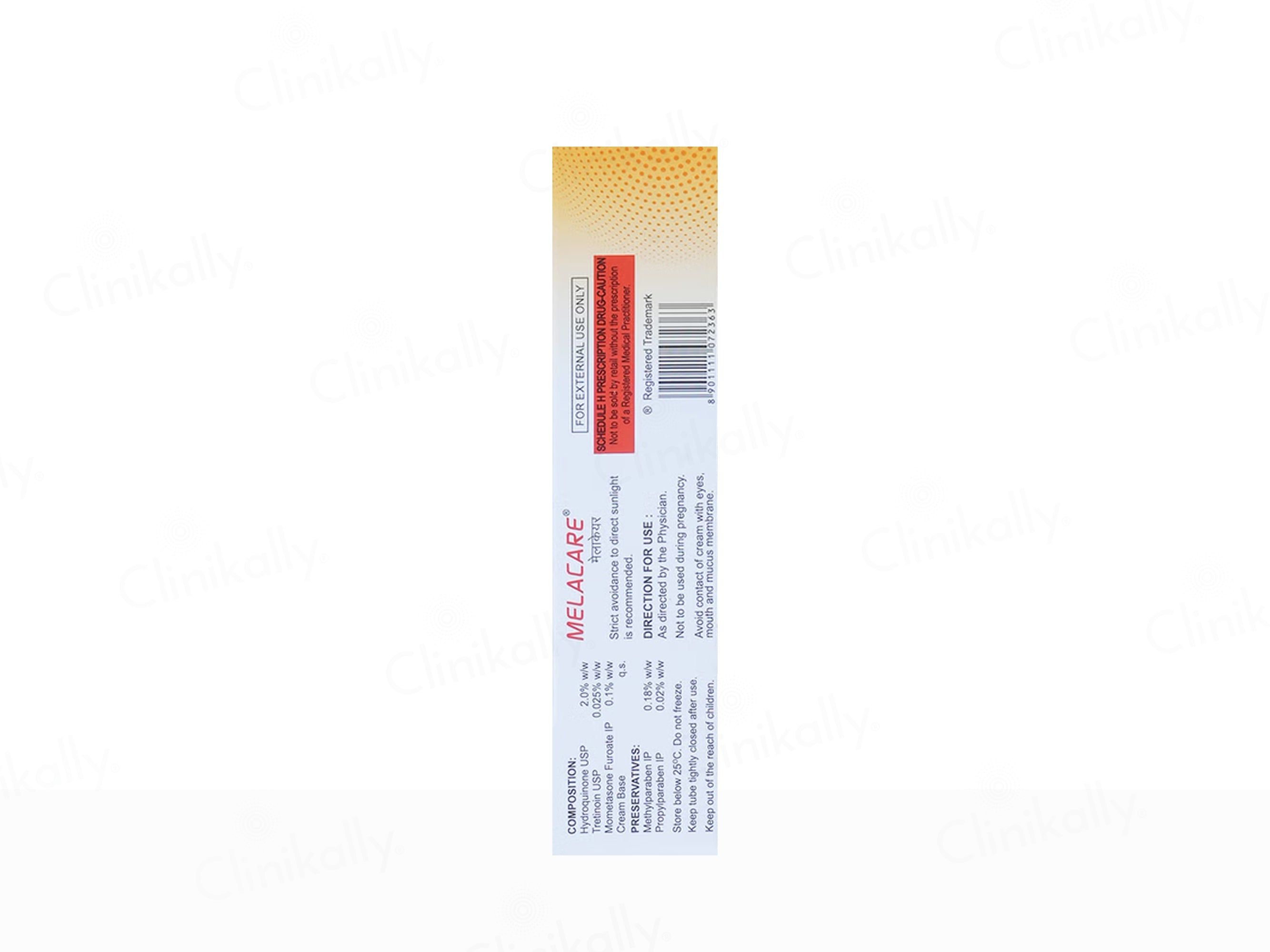 Melacare Cream is a dermatologist-recommended triple-action depigmenting formula with Hydroquinone, Tretinoin, and Mometasone Furoate. Designed to effectively treat melasma, dark spots, acne marks, and hyperpigmentation, this potent cream works by reducing melanin production, accelerating skin cell turnover, and calming inflammation. Ideal for stubborn pigmentation and uneven skin tone, Melacare Cream helps reveal a clearer, brighter, and smoother complexion with consistent use. Trusted by dermatologists for its targeted results, Melacare is a go-to solution for pigmentation correction and skin rejuvenation.