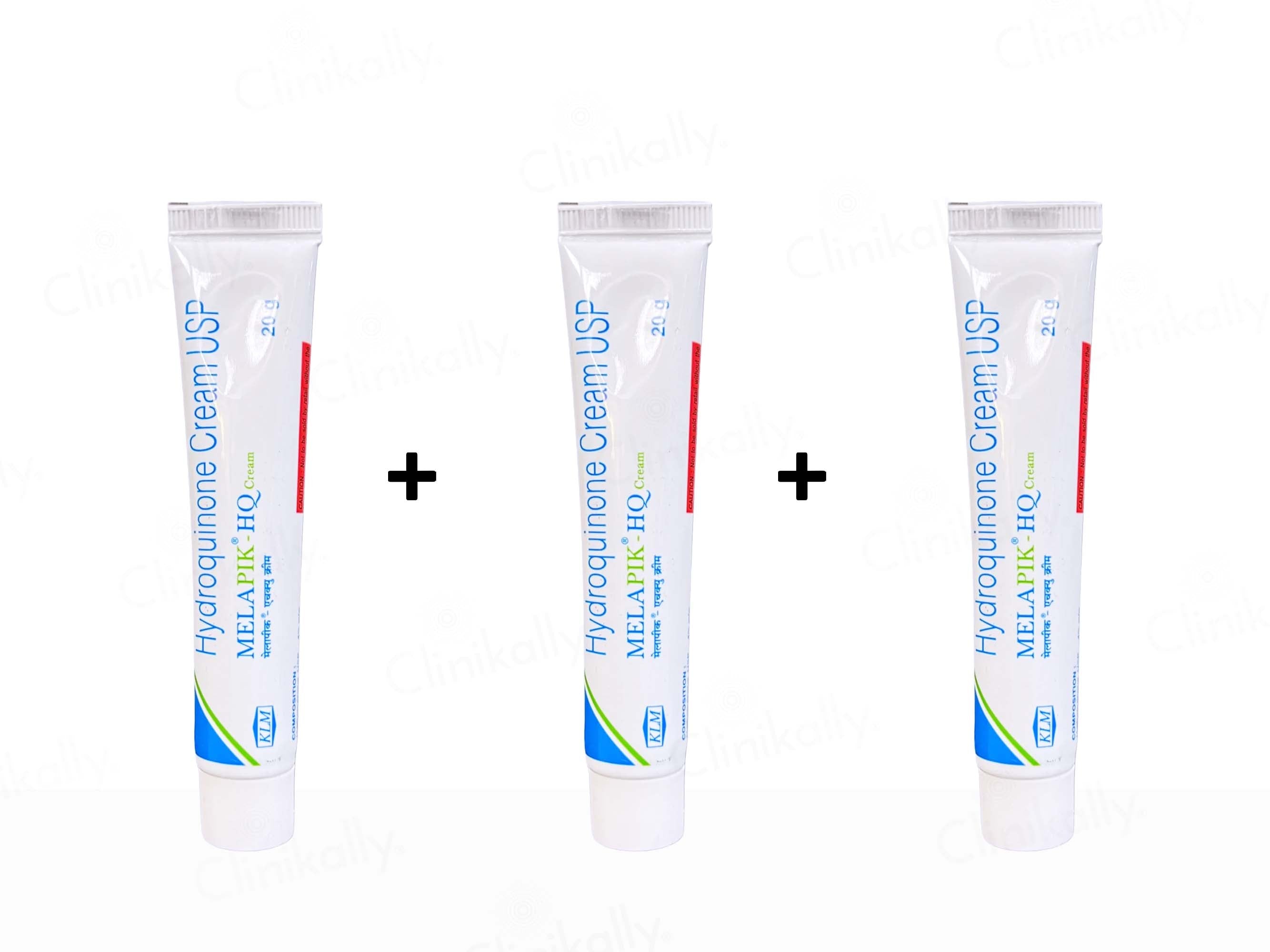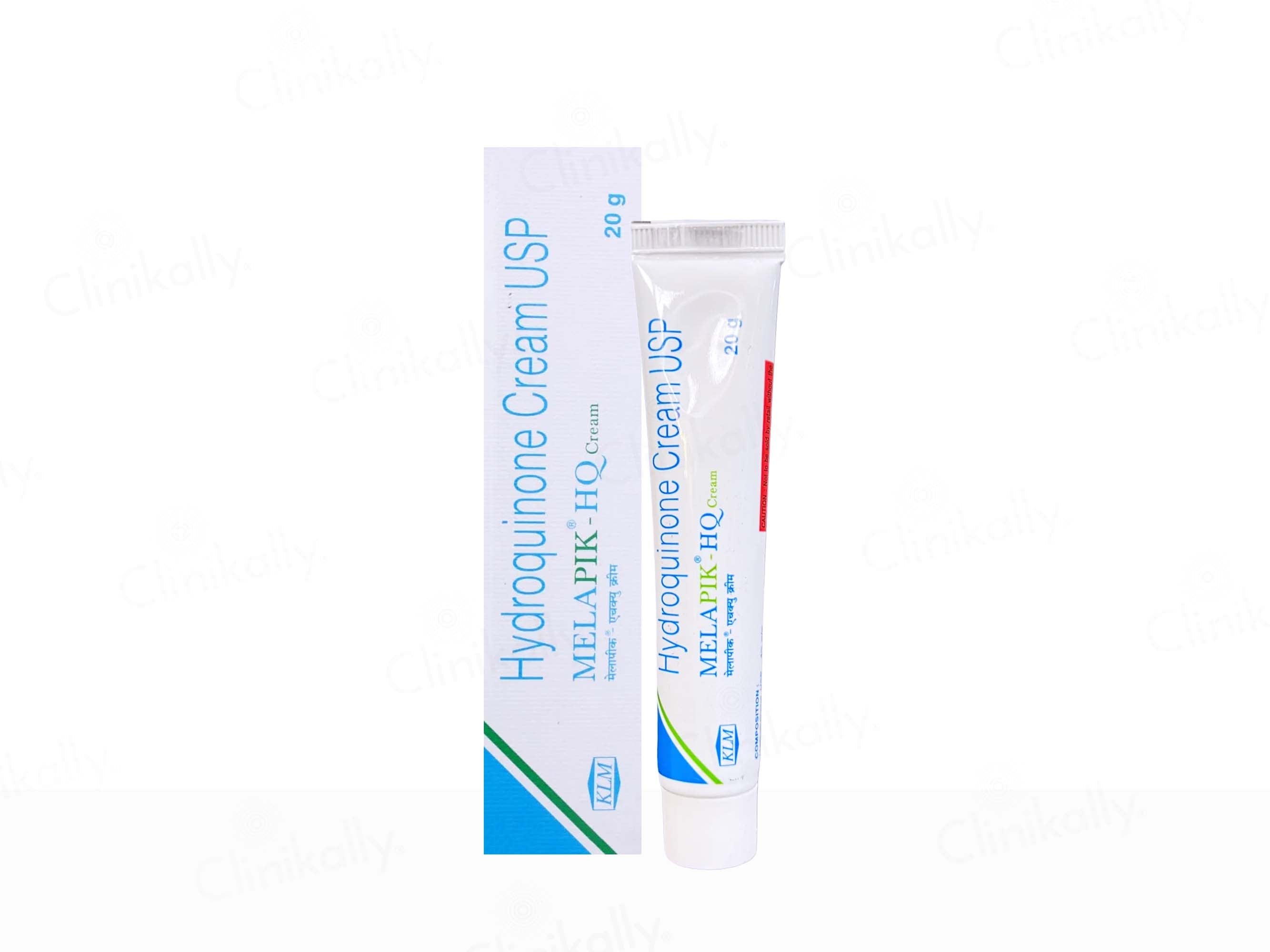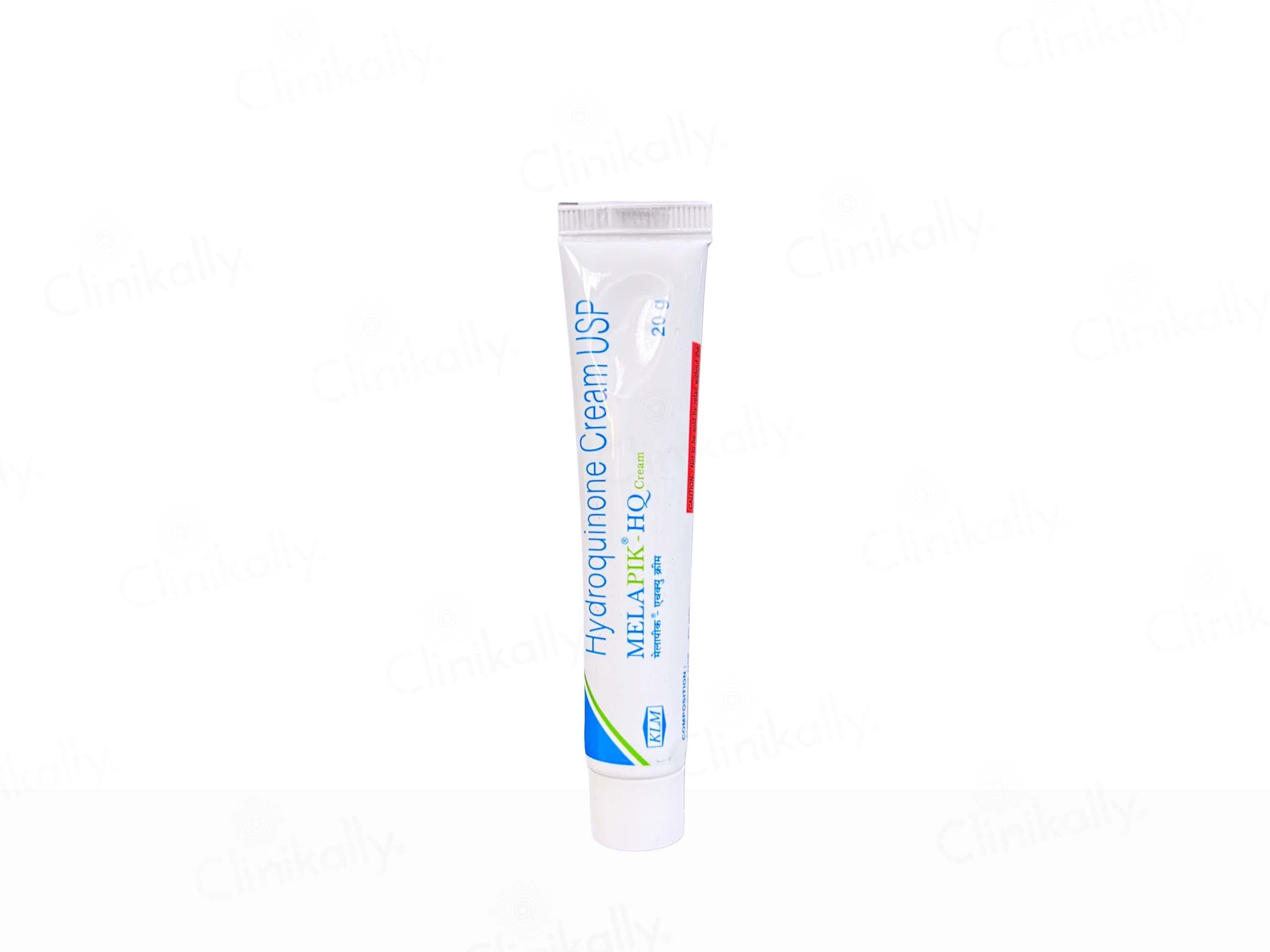 Melapik-HQ Cream is a dermatologist-recommended depigmenting treatment formulated with Hydroquinone 4%, a clinically effective skin-lightening agent that helps reduce melanin production. It is specifically used to treat hyperpigmentation concerns such as melasma, dark spots, age spots, and post-inflammatory pigmentation. Melapik-HQ works by lightening discolored patches and evening out skin tone for a brighter complexion. Ideal for short-term use under medical supervision, this cream should be applied at night and always paired with sun protection during the day to prevent further pigmentation and enhance results.