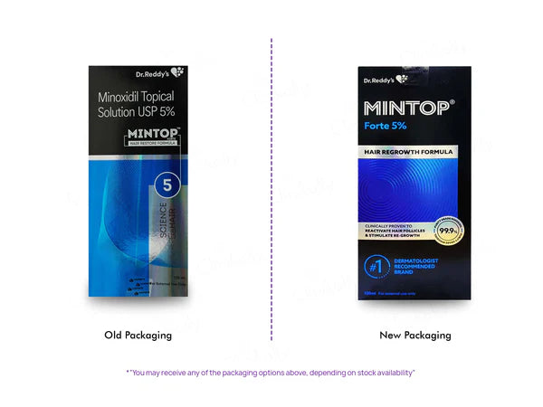 Mintop Forte 5% Solution is a medication containing the active ingredient Minoxidil. It is commonly used to treat hair loss, particularly in cases of male pattern baldness and female pattern hair loss. This easy-to-apply solution revitalizes hair follicles, increasing hair density and thickness. It's a reliable choice for regaining a fuller, more youthful head of hair and boosting self-confidence.