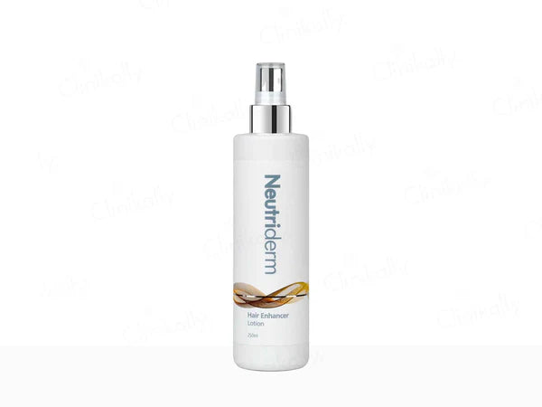 Neutriderm Hair Enhancer Lotion fortifies hair roots, enhances scalp blood circulation, and nourishes hair with ingredients like biotin and panthenol.