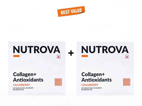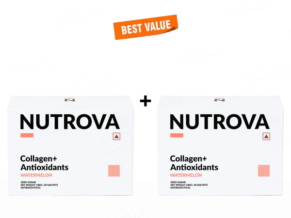 Nutrova Collagen+ Antioxidants is a powerhouse blend designed to renew and protect your skin. Formulated to enhance collagen structure, it safeguards against daily damage while boosting hydration, firmness, and elasticity. Say goodbye to dullness, wrinkles, pigmentation, and roughness as this potent formula works to rejuvenate and revitalize your skin for a radiant, youthful complexion. The power of Vitamins C and E, and Taurine helps nourish skin cells that also aid in collagen production.