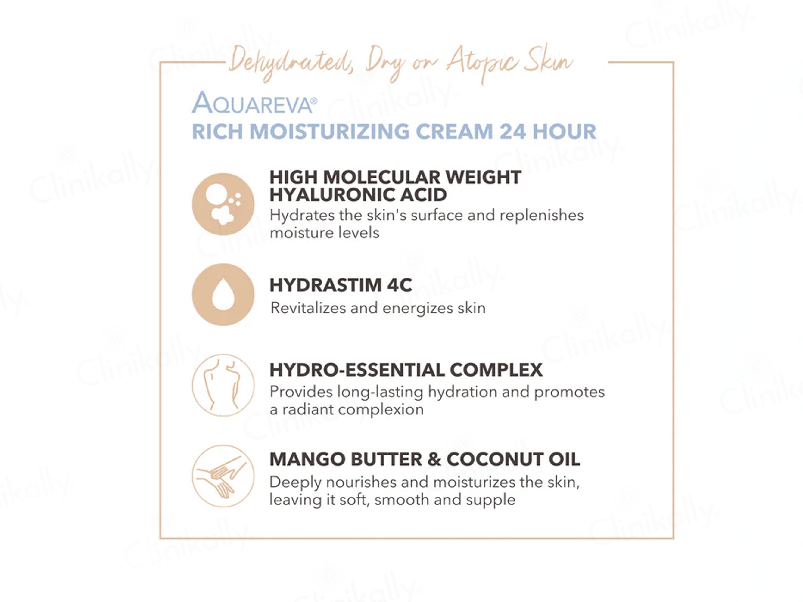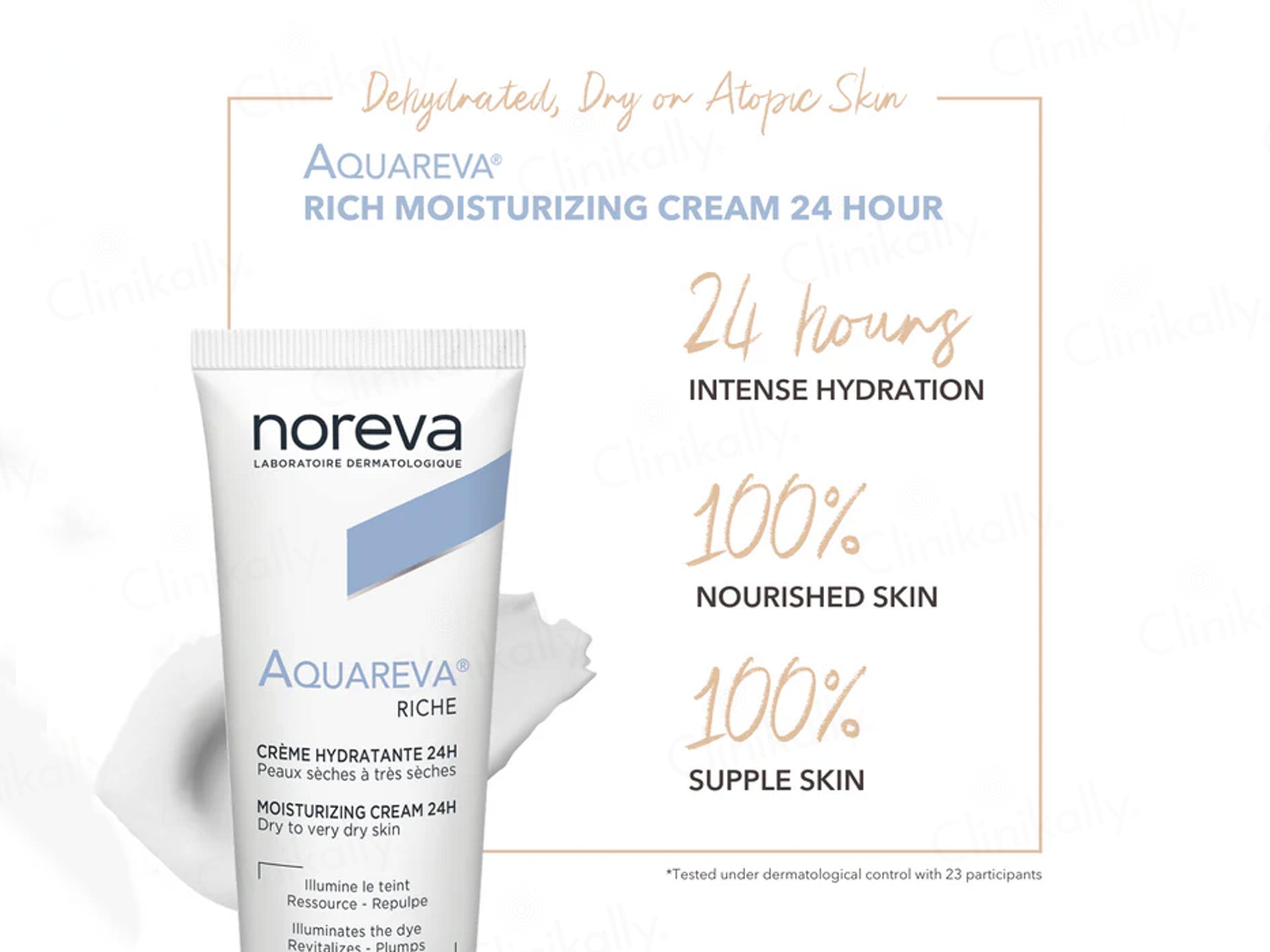 Noreva Aquareva Riche 24H Moisturizing Cream provides long-lasting hydration, replenishes the skin's moisture barrier, and leaves skin soft and supple.