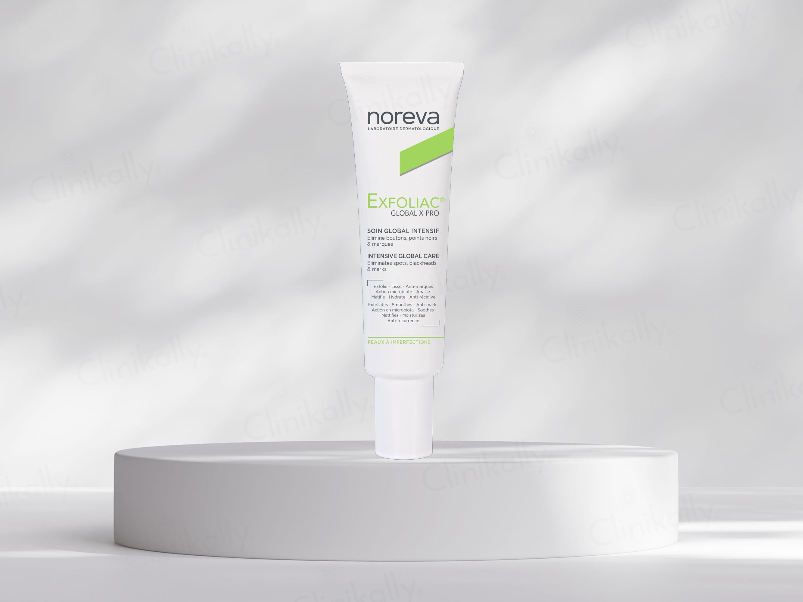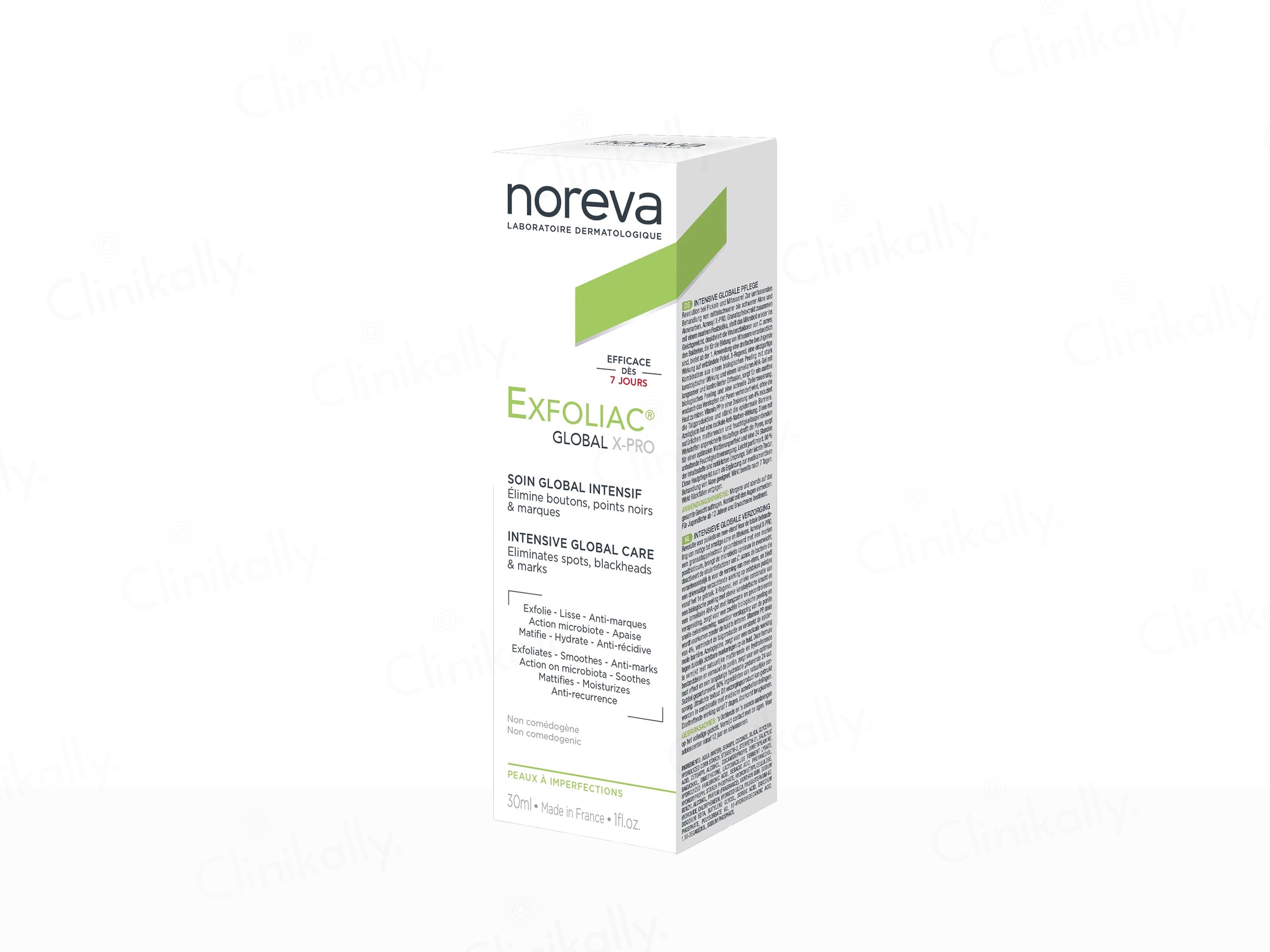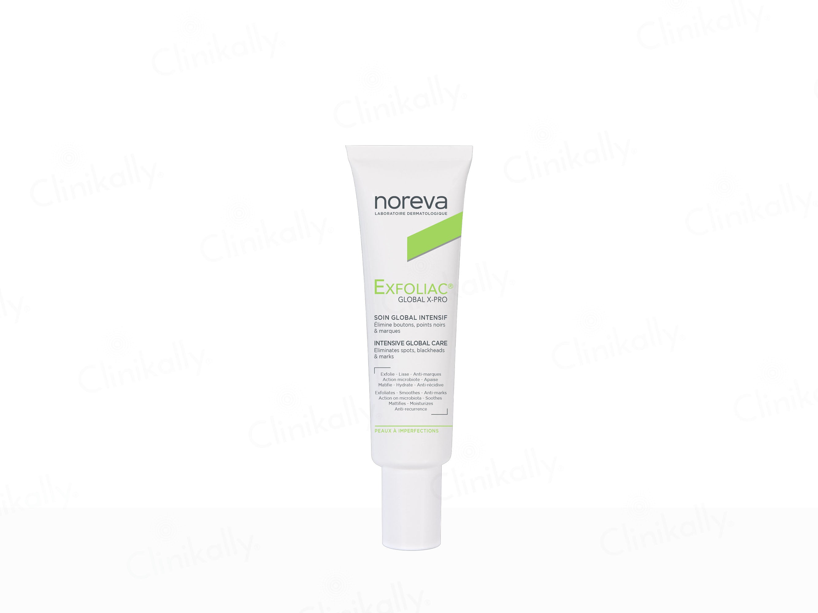 Noreva Exfoliac Global X-Pro Intensive Care corrects blemishes, reduces blackheads, and mattifies the skin to fight acne without irritation.