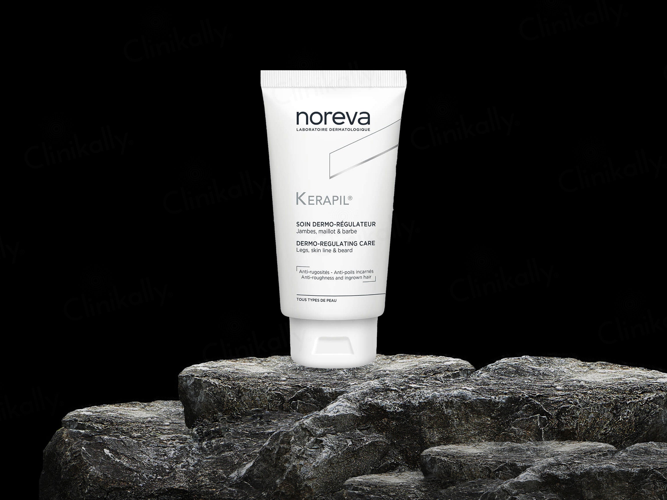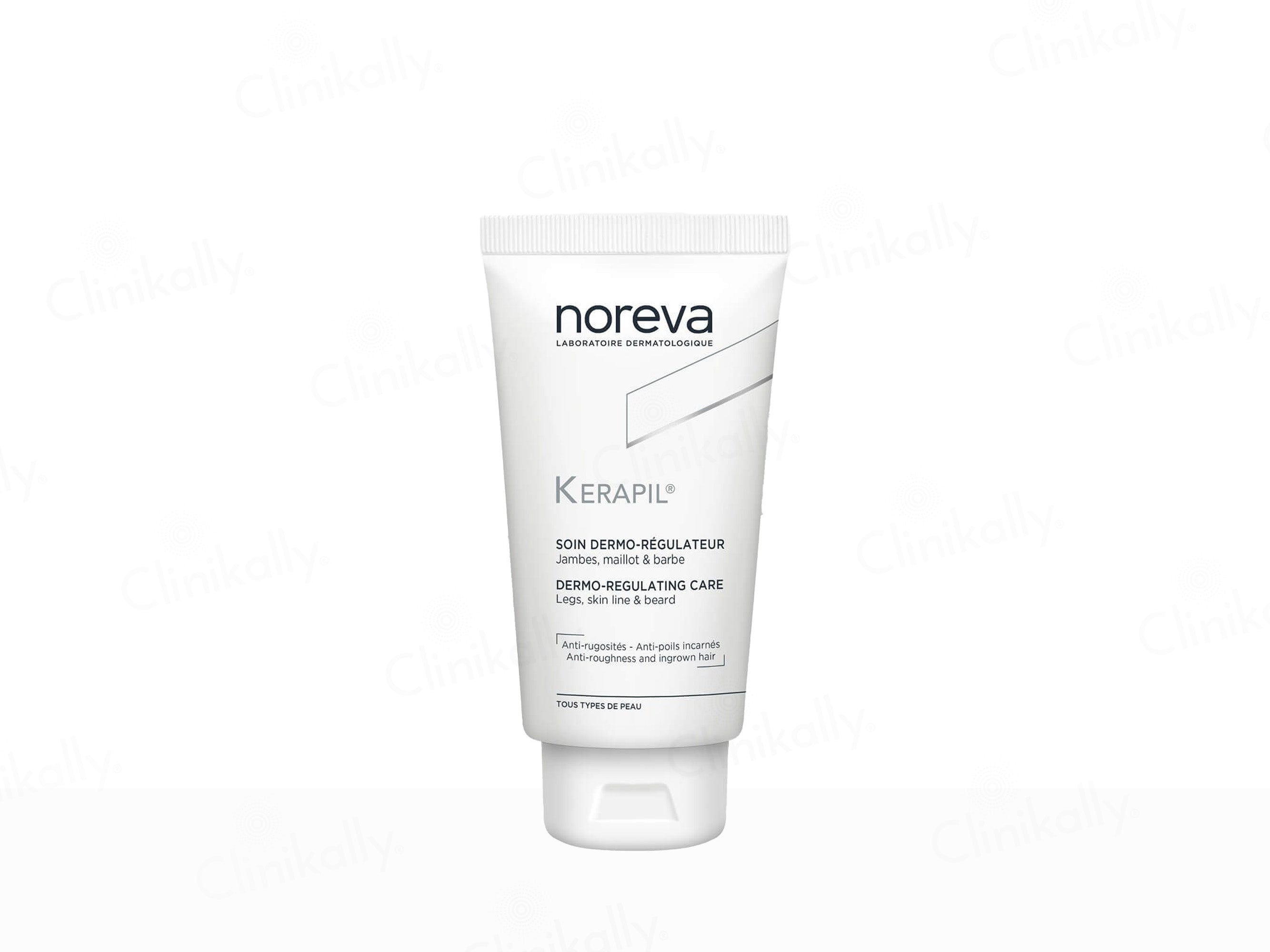 Noreva Kerapil Dermo-Regulating Care is used to exfoliate and soften the skin while preventing ingrown hairs and roughness.