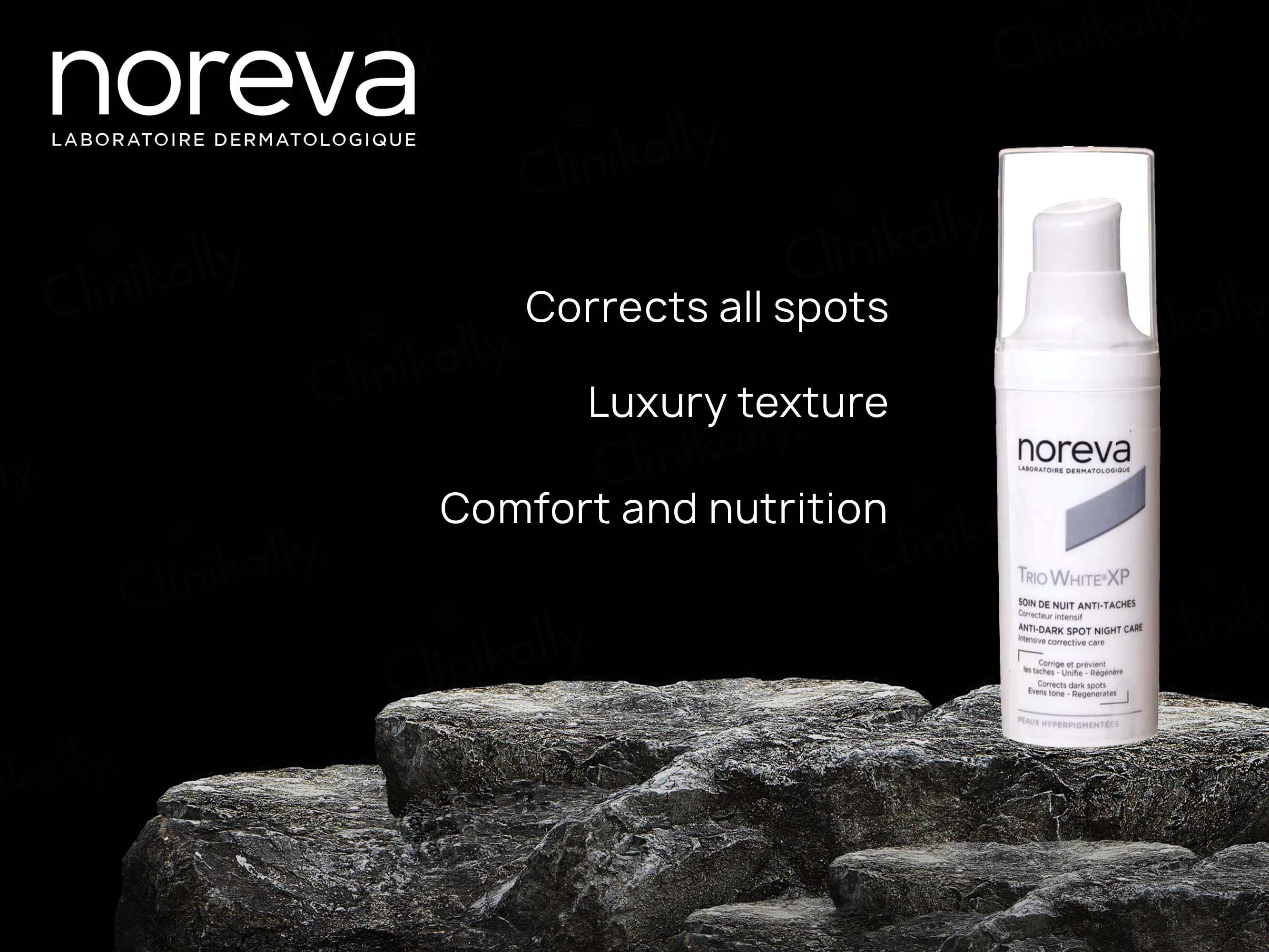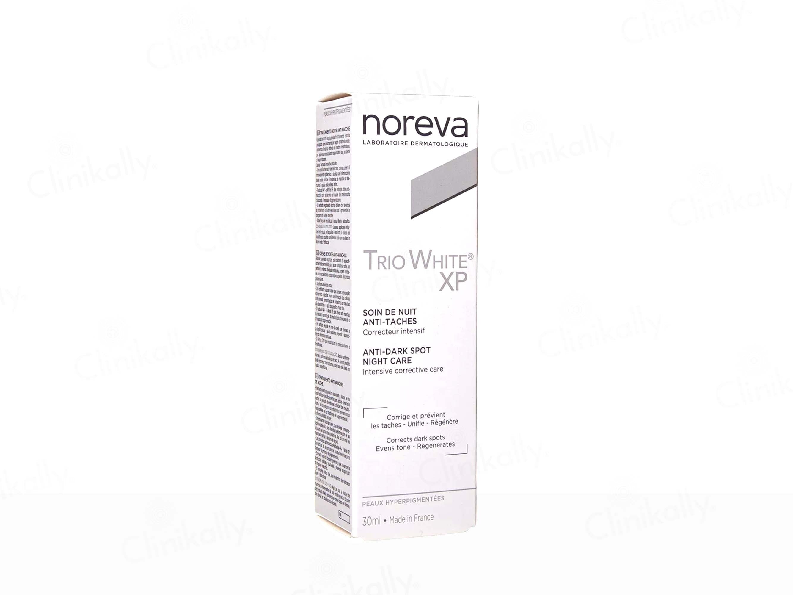 Noreva Trio White XP Anti-Dark Spot Night Care is an intensive corrective night cream formulated to target dark spots and hyperpigmentation while you sleep. Enriched with advanced brightening ingredients, it corrects existing spots, unifies uneven skin tone, and regenerates skin overnight. Ideal for hyperpigmented and dull skin, it promotes a visibly clearer and more radiant complexion by morning. Made in France and dermatologically tested, this night care solution supports skin renewal for long-lasting brightness and even tone.