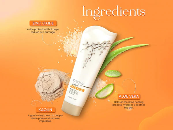 Ozone D-Tan Face Pack is a revitalizing treatment that helps remove layers of tan while replenishing the skin with intense hydration and nourishment. Enriched with Aloe Vera, Cucumber, and Shea Butter, it soothes, softens, and brightens the skin while targeting deep layers for a renewed appearance. Its skin-renewing brightening formula reduces uneven skin tone and damage caused by sun exposure, giving you a fresher, more radiant complexion.