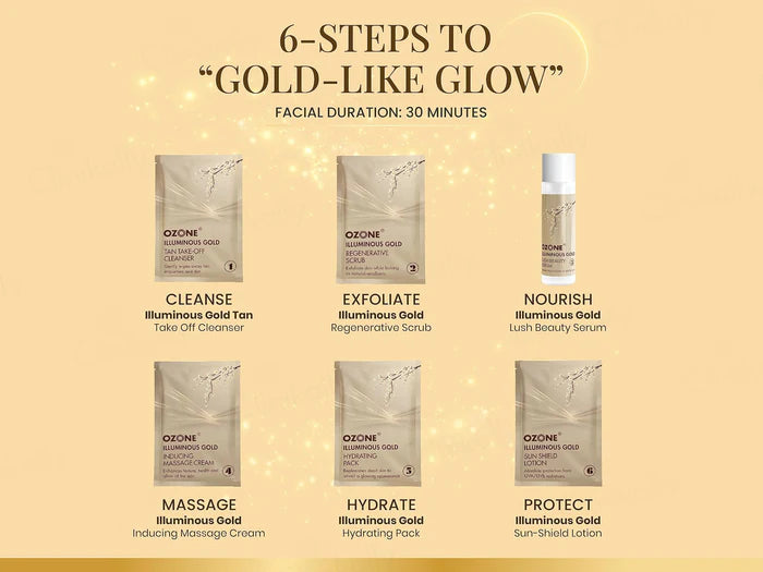 Use Ozone Illuminous Gold Intense Inner Radiance Kit once a month or before special occasions.