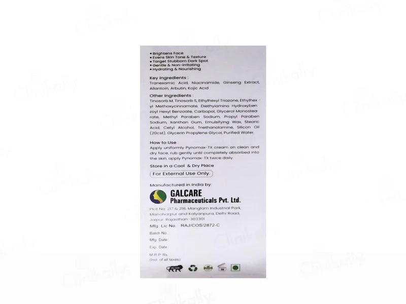 Pynomax-TX Anti-Melasma Cream SPF 50 is a skincare treatment formulated to reduce melasma, dark spots, and hyperpigmentation, brightening the skin and promoting an even complexion.
