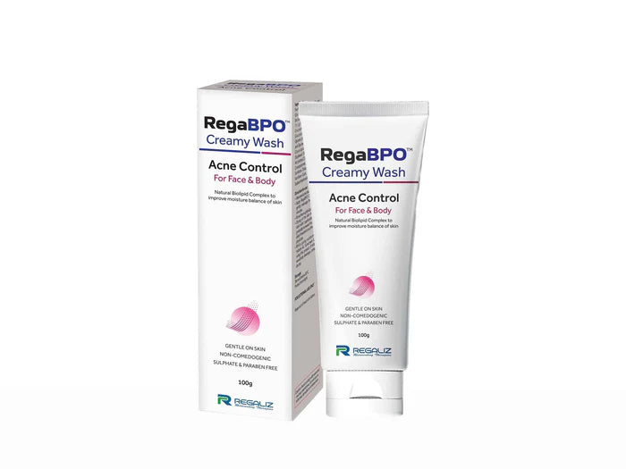 Rega-BPO Acne Control Creamy Wash is a benzoyl peroxide-based facial cleanser designed to fight acne, clear pores, and reduce inflammation while maintaining skin hydration.