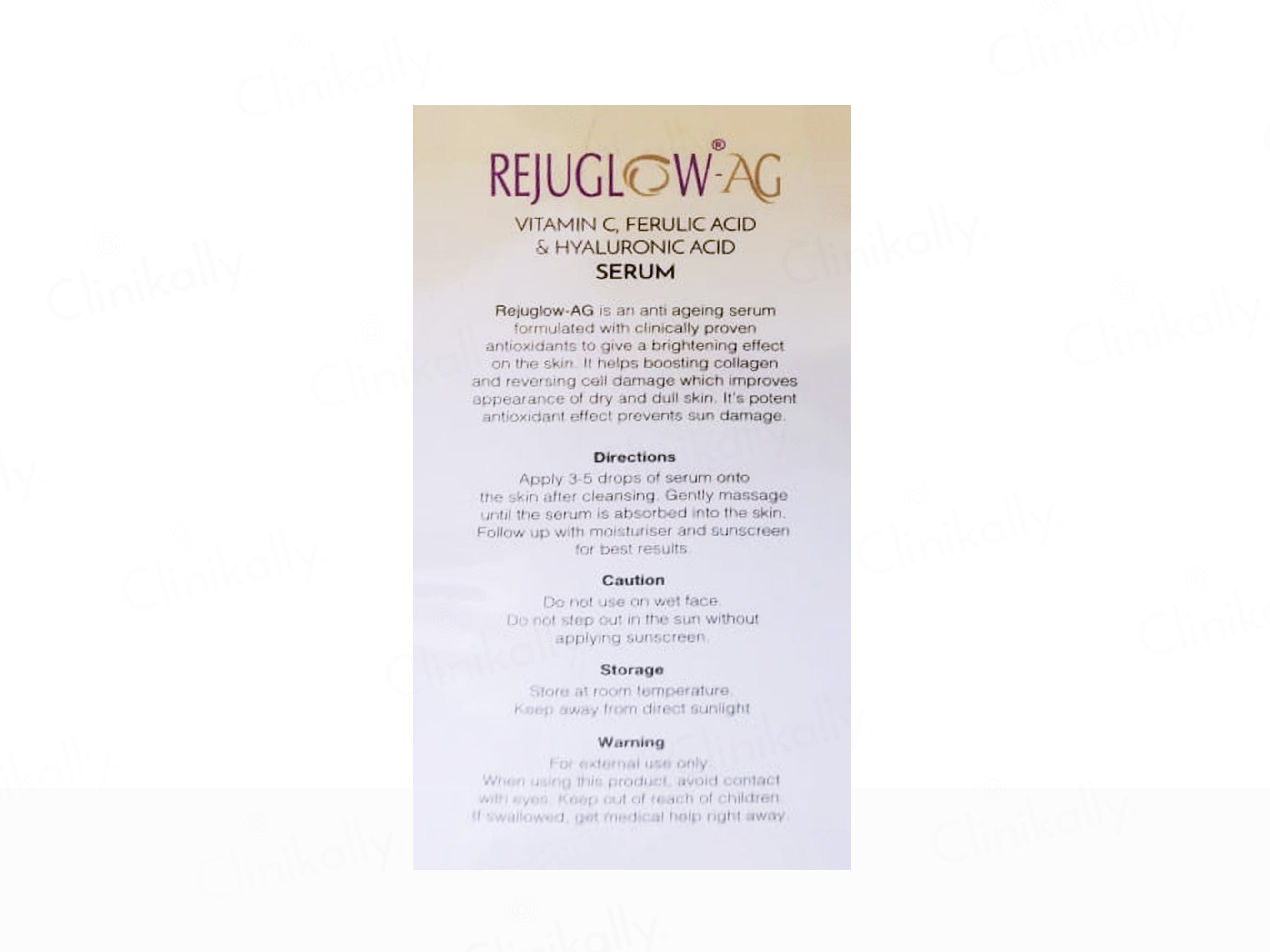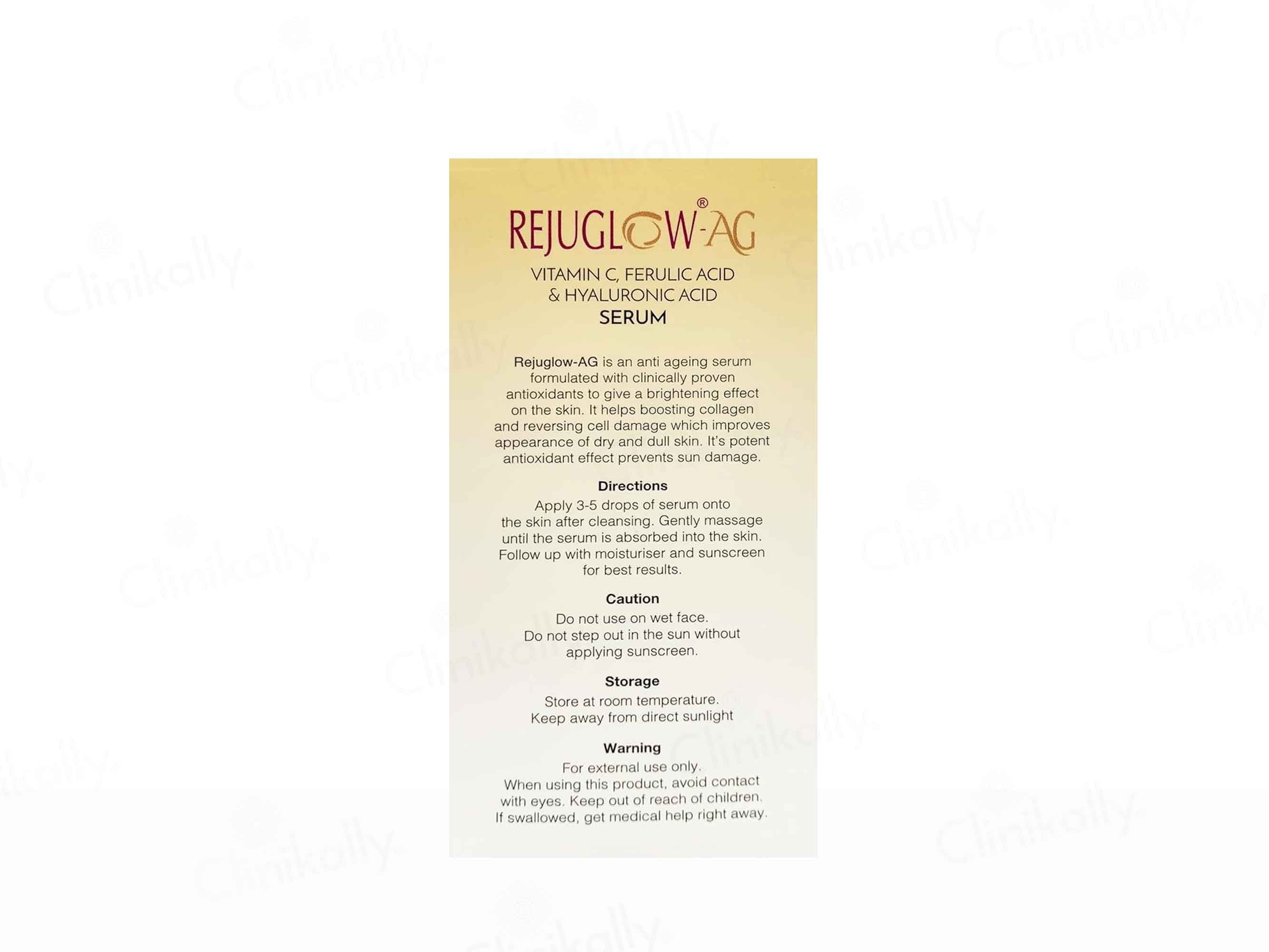 Rejuglow-AG Anti-Ageing Face Serum is a sophisticated blend designed to combat the signs of aging effectively. This powerful serum is enriched with age-defying ingredients such as retinol, glycolic acid, and peptides, which work synergistically to reduce wrinkles, fine lines, and age spots. The formula also includes antioxidants like vitamin C and E to protect the skin from environmental damage and promote a radiant complexion. Ideal for mature skin types, this lightweight serum absorbs quickly, leaving the skin feeling smooth, firm, and revitalized.