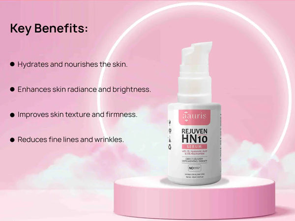Rejuven HN10 Serum works by deeply penetrating the skin to hydrate, reduce dark spots, and improve skin elasticity.