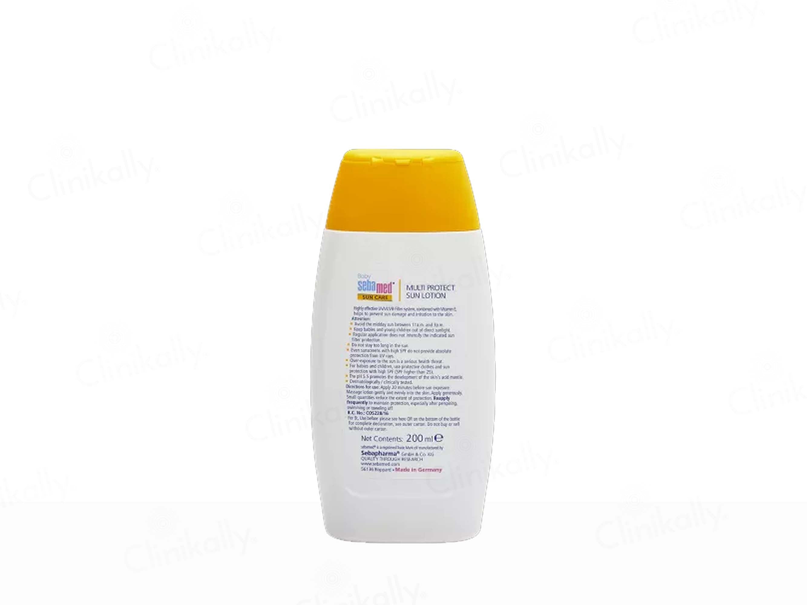 Sebamed Baby Multi Protect Sunscreen Lotion SPF 50+ is used to protect babies' delicate skin from harmful UVA and UVB rays, preventing sunburns and skin damage.