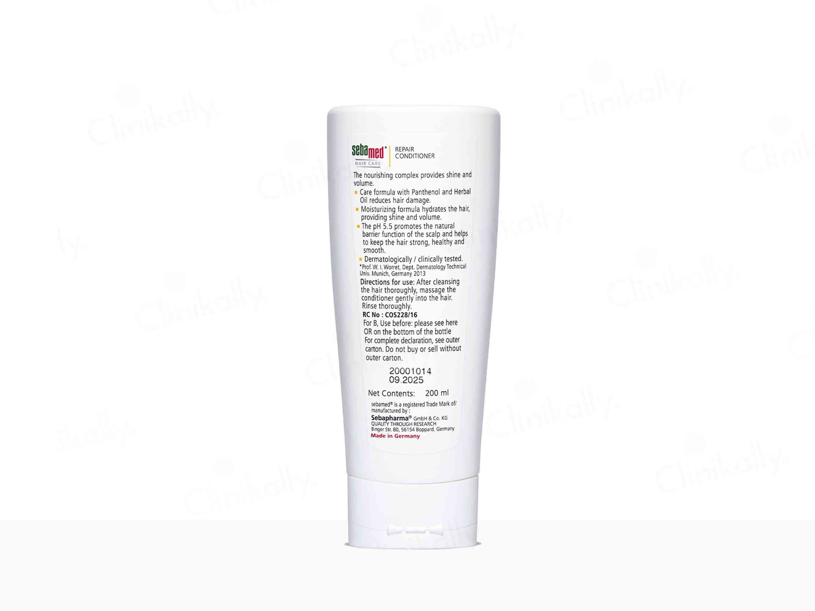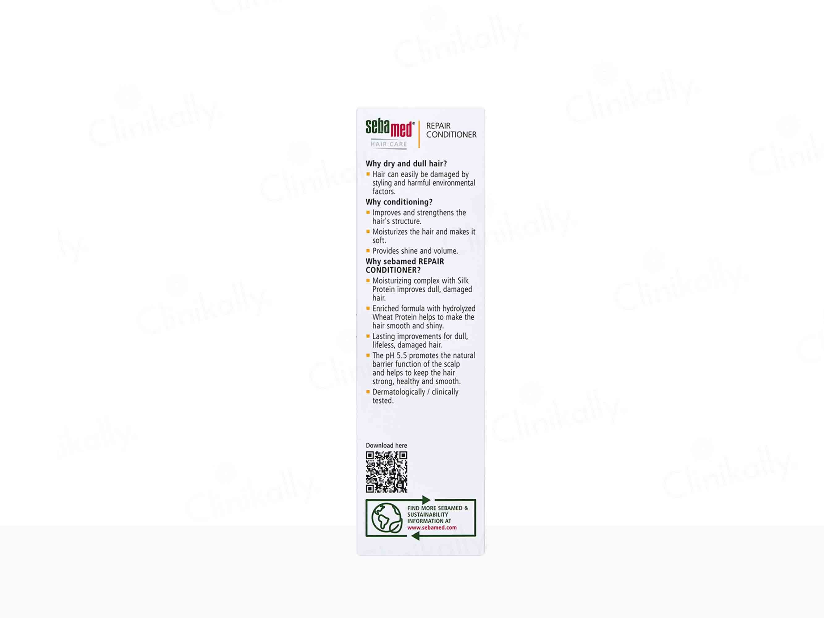 Sebamed Hair Repair Conditioner contains a blend of nourishing ingredients, including silk proteins and plant extracts, that deeply penetrate hair fibers to repair, hydrate, and strengthen hair from the inside out.