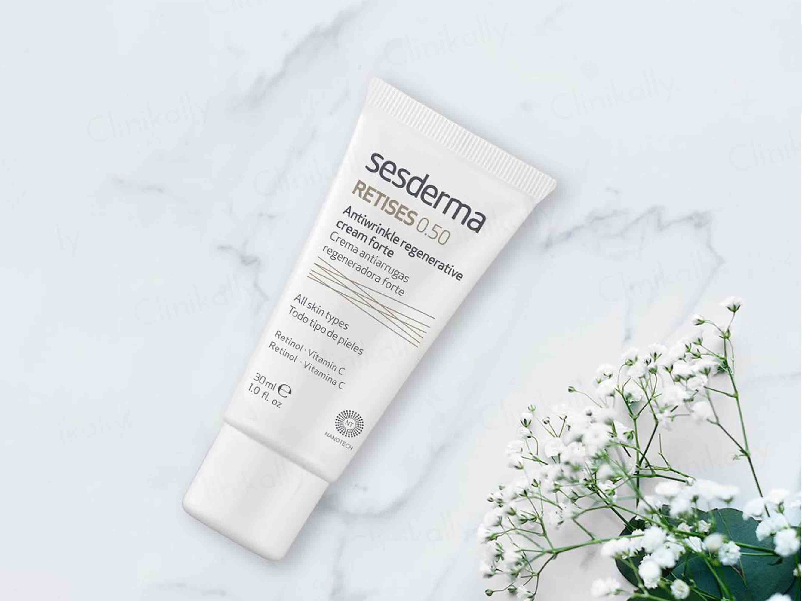 Sesderma Retises 0.5 Anti-Wrinkle Regenerative Cream is an advanced anti-aging formula enriched with 0.5% retinol and stabilized vitamin C to visibly reduce fine lines, wrinkles, and signs of photoaging. This powerful night cream promotes collagen synthesis, improves skin elasticity, and enhances radiance, making it ideal for mature or sun-damaged skin. Suitable for all skin types, it also helps even out skin tone and diminish pigmentation. With continued use, it restores firmness and smoothness, leaving your skin rejuvenated and youthful. Dermatologist-recommended for intensive skin renewal and regeneration. Use only at night and apply sunscreen during the day.