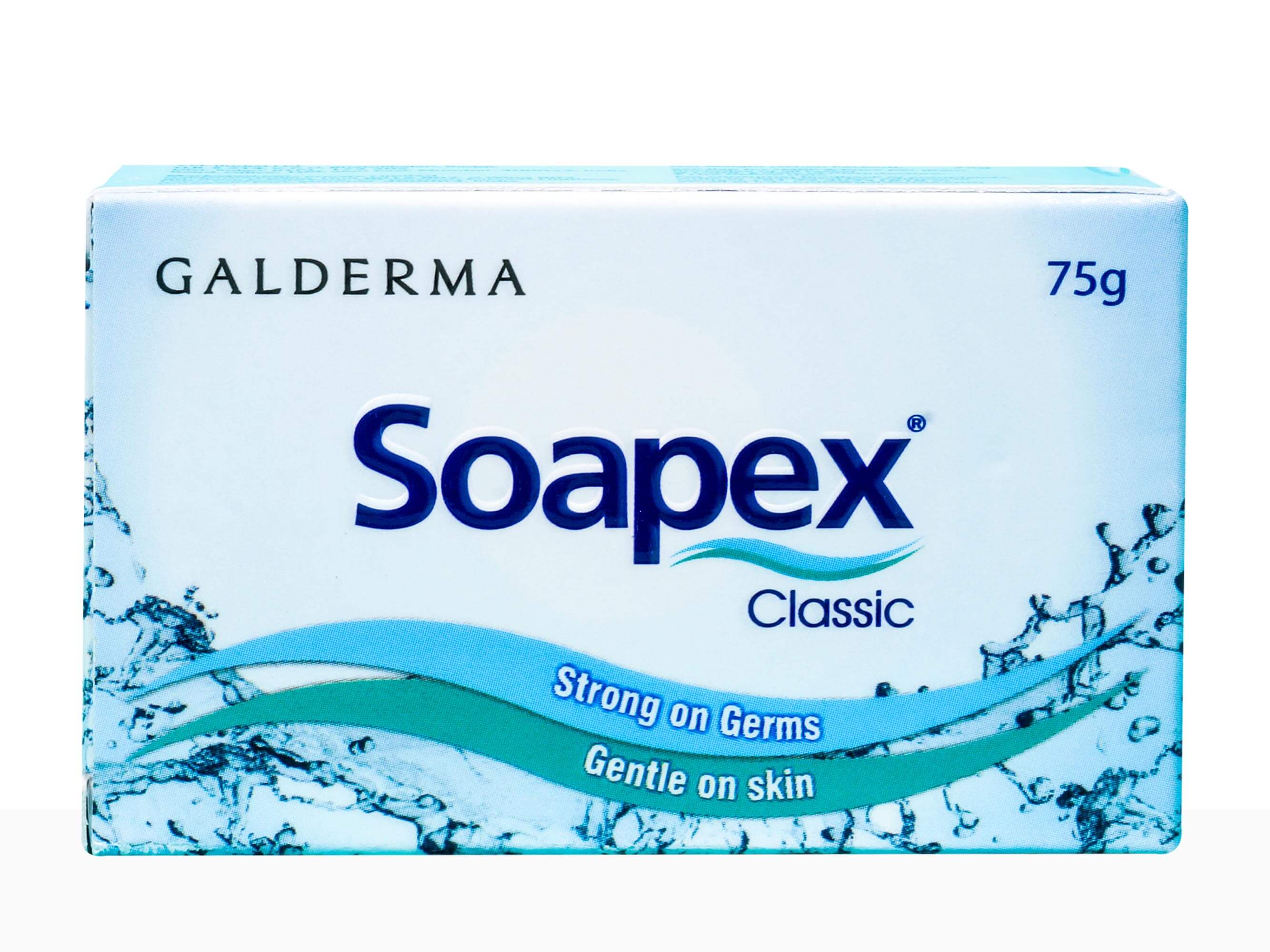 Soapex Classic Soap combines effective cleansing with skin protection, enriched with Triclosan for antibacterial action and Glycerin for hydration. This soap gently cleanses, removing impurities and excess oil while maintaining the skin's pH balance. Ideal for daily use, it leaves the skin feeling fresh, supple, and protected against acne-causing bacteria, making it suitable for all skin types.