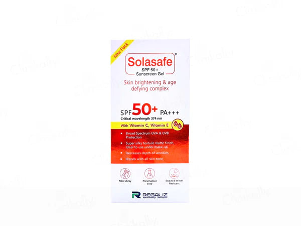 Solasafe SPF 50+ Silicone Sunscreen Gel is a skin brightening and age-defying antioxidant complex that provides advanced protection against UV rays.