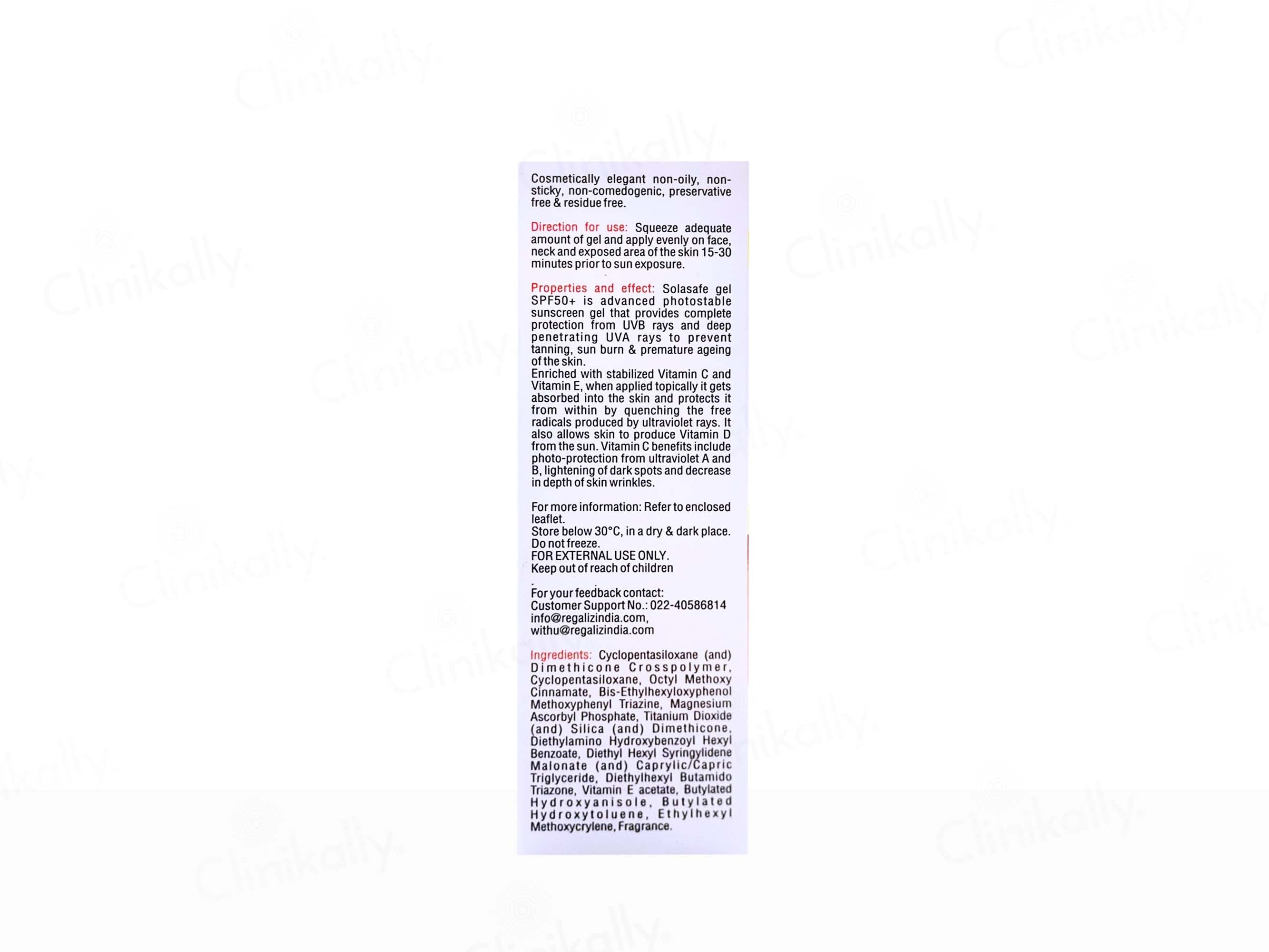 Solasafe SPF 50+ Silicone Sunscreen Gel offers advanced protection against UV rays, preventing sun damage and premature skin aging. Its skin-brightening and age-defying antioxidant complex forms a protective barrier on skin, scattering both UVA and UVB rays. With soothing ingredients, Solasafe SPF 50+ Silicone Sunscreen Gel reduces wrinkles. Being water-resitant and sweat-resistant, this silicone sunscreen gel ensures long-lasting defense against sun-induced skin issues.