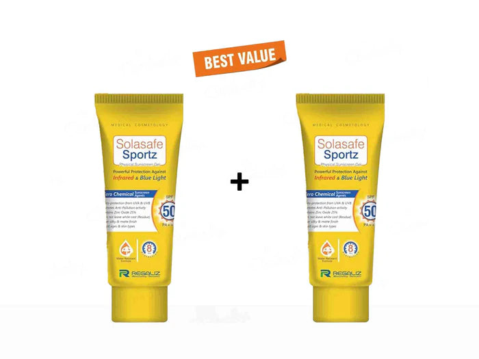 Solasafe Sportz Physical Sunscreen Gel SPF 50+ PA+++ offers superior sun protection for active lifestyles. Its innovative formula combines high SPF 50+ protection with PA+++ to shield against harmful UVA and UVB rays. Designed for sports enthusiasts, Solasafe Sportz Physical Sunscreen Gel ensures long-lasting, sweat-resistant coverage, keeping your skin safe, photo-protected and healthy during outdoor activities. Get reliable protection with Solasafe Sportz.