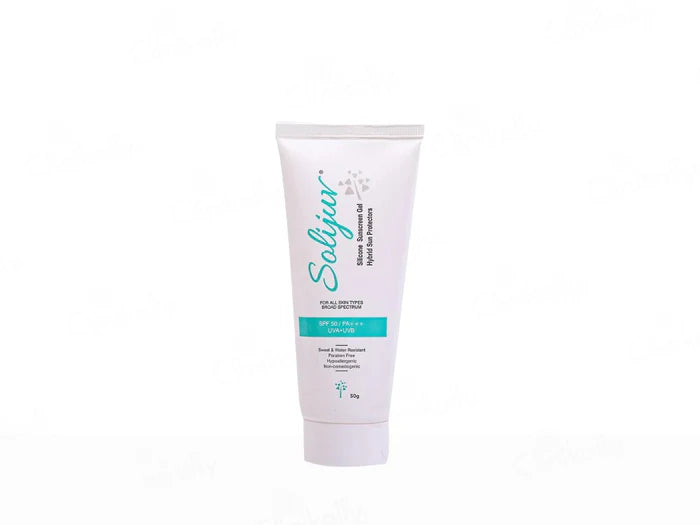 Solijuv Silicone Sunscreen Gel SPF 50 PA+++ is an advanced hybrid sunscreen offering superior UVA and UVB protection for all skin types.