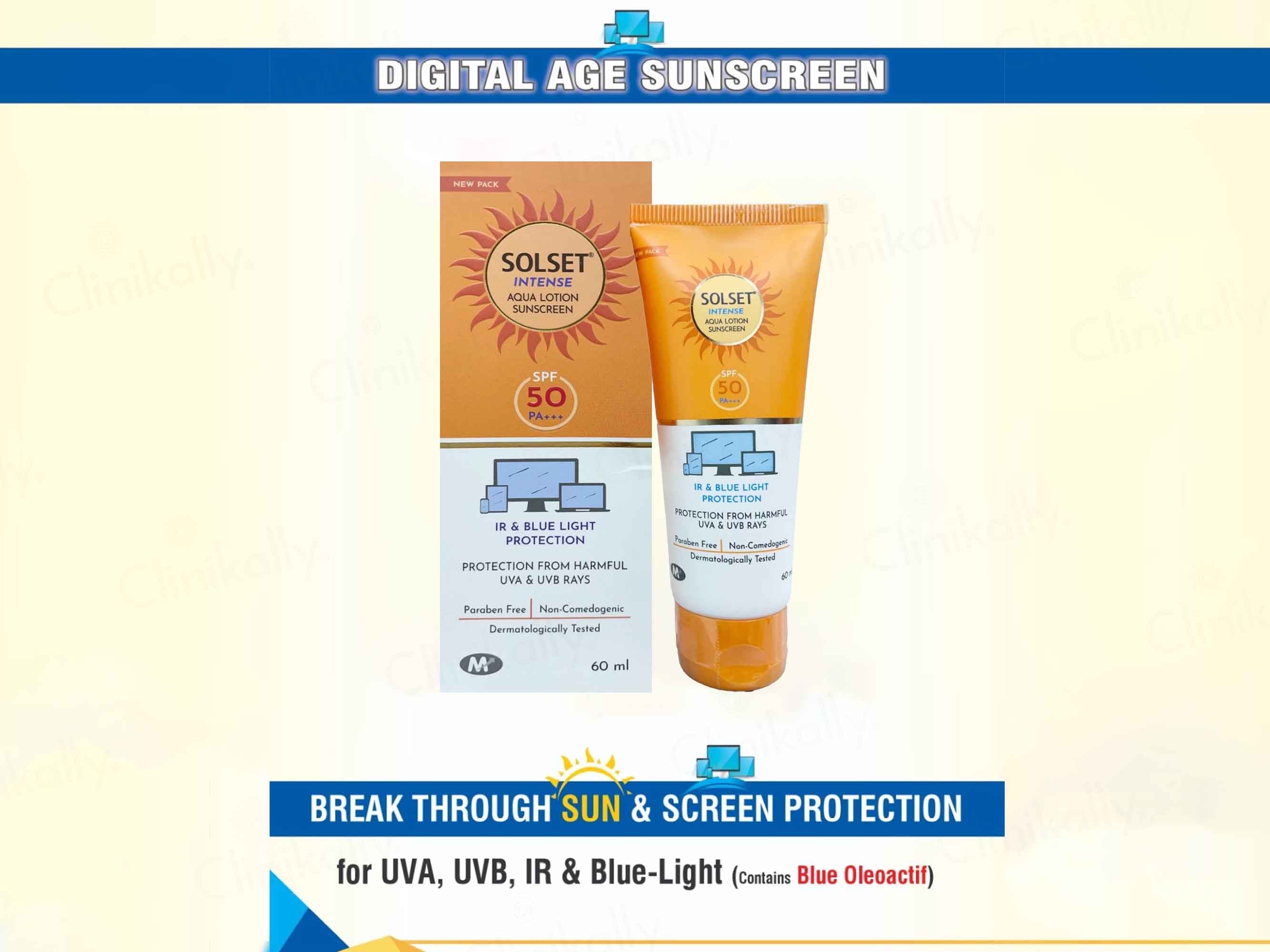 Solset Intense Aqua Lotion Sunscreen SPF 50 PA+++ is a high-performance sunscreen designed to offer superior protection against harmful IR, Blue Light, UVA and UVB rays while providing intense hydration. This lightweight, water-based formula absorbs quickly without leaving a greasy residue or white cast, making it perfect for daily use. It not only shields the skin from sun damage but also keeps it moisturized and soothed throughout the day. Ideal for all skin types, this sunscreen is especially beneficial in hot and humid climates where sun exposure is intense.