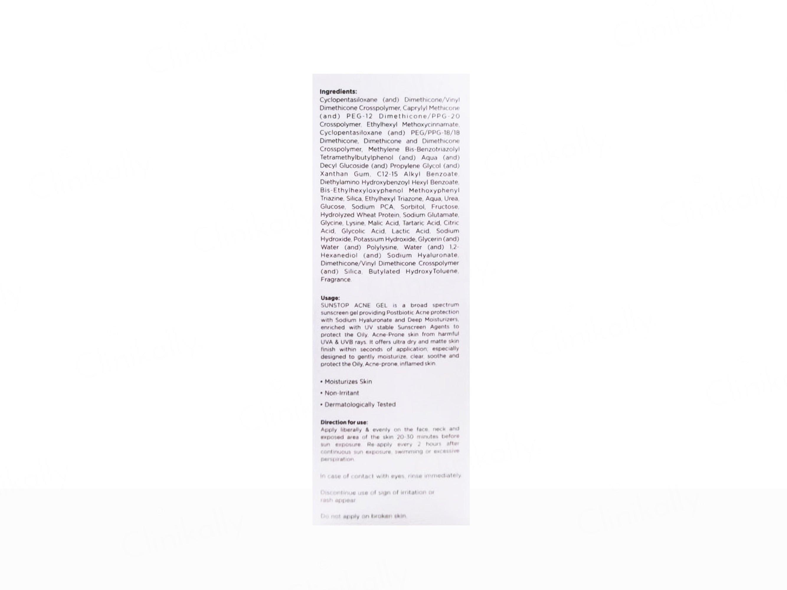 Sunstop Acne Ultra Matte Advanced Sun Protection Gel SPF 80 PA++++ is a high-performance sunscreen gel designed to provide superior sun protection while controlling acne and shine. This advanced formula offers broad-spectrum SPF 80 PA++++ protection, ensuring your skin is shielded from harmful UVA and UVB rays. Its ultra-matte finish helps control oil and shine, making it perfect for acne-prone and oily skin types. The lightweight, non-greasy formula ensures comfortable wear throughout the day.