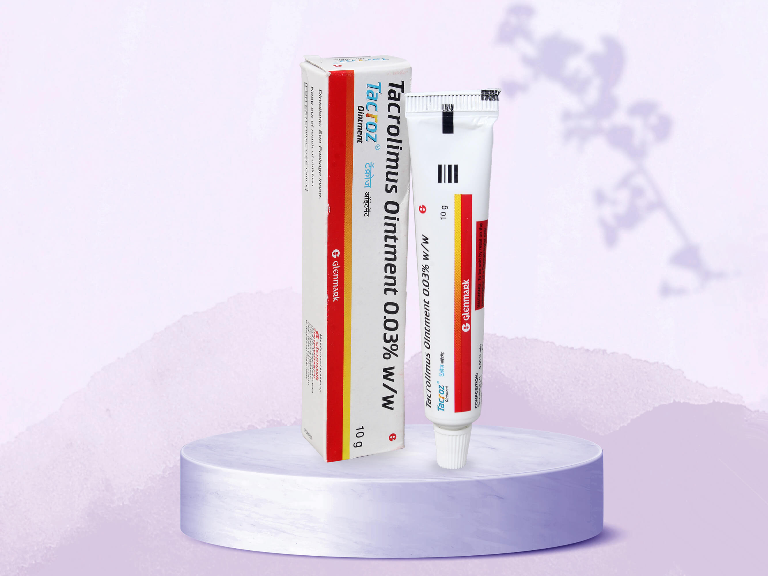 Tacroz 0.03% Ointment suppresses the over-reaction of immune cells in the skin to a stimulus. It is used to treat moderate to severe atopic dermatitis (eczema) and reduces allergic reaction and inflammation (redness and swelling).