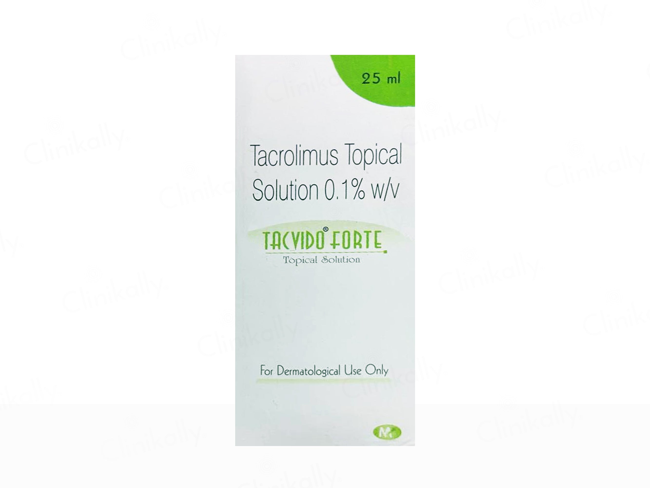 Tacvido Forte Solution is a potent topical medication used to treat skin conditions like psoriasis and vitiligo. Its active ingredient, tacrolimus, works by suppressing the immune response in the skin, reducing inflammation and promoting healing. This solution is clinically proven to effectively manage symptoms and improve skin appearance. Experience relief and restore skin health with Tacvido Forte Solution.