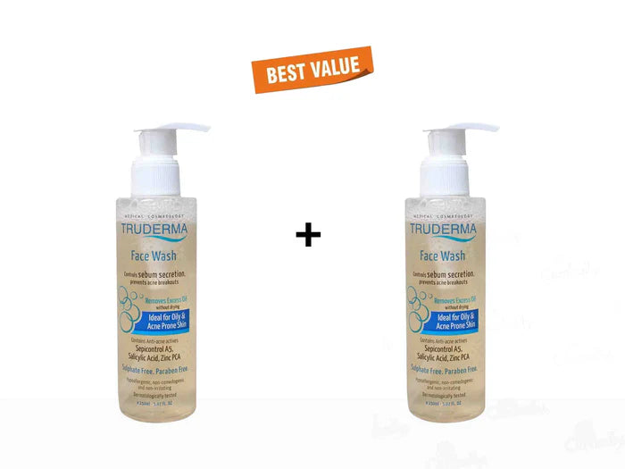 Apply a small amount of Truderma Face Wash to wet skin, gently massage in circular motions, then rinse thoroughly with water. Use twice daily for best results.
