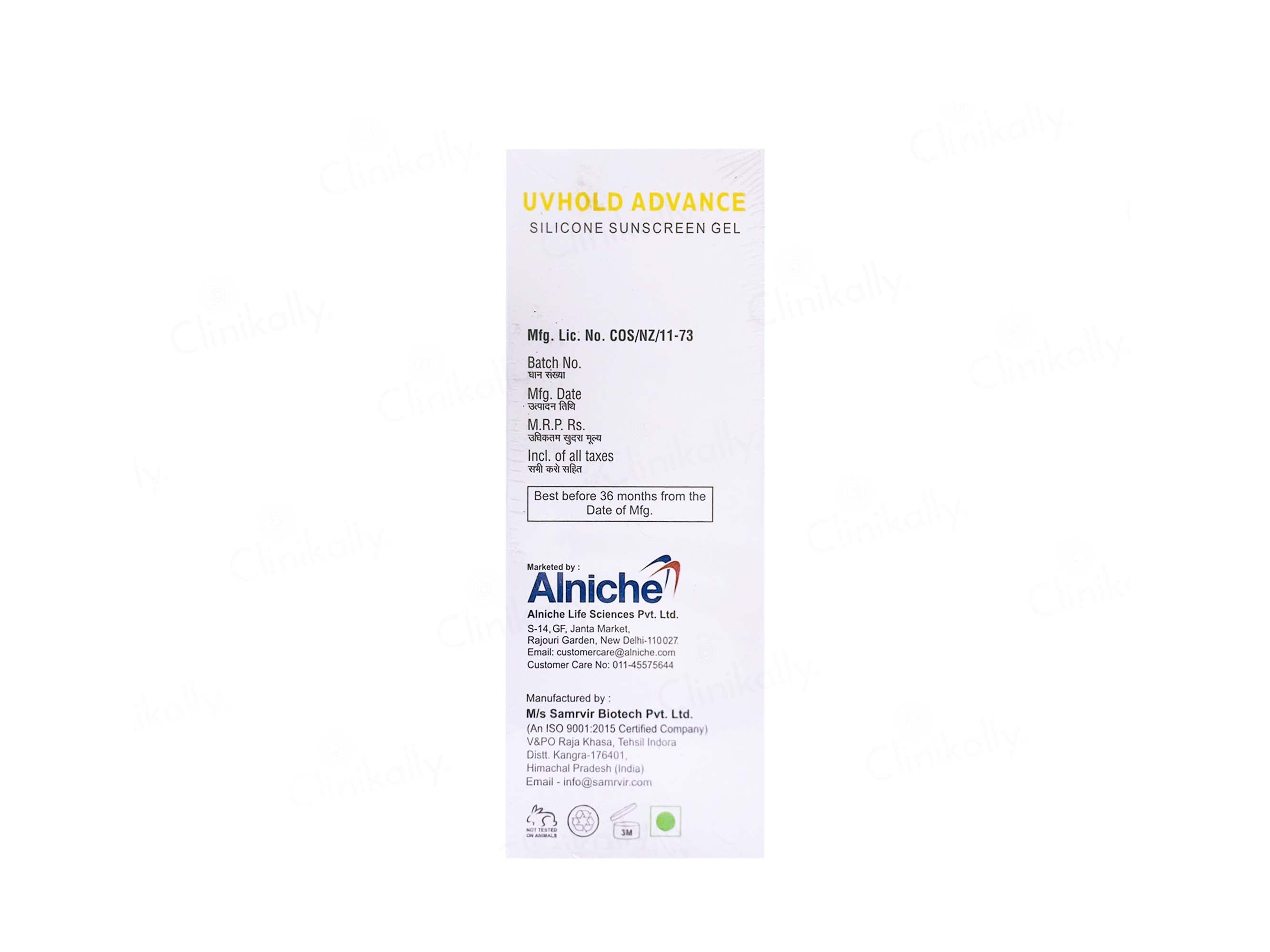 UVHold Advance Silicone Sunscreen Gel SPF 50 PA++++ offers broad-spectrum protection against harmful Blue Light, Infra Red, 5G, UVA and UVB rays. Its advanced silicone-based gel formula provides a non-greasy, lightweight, and water-resistant shield that protects the skin from sun damage and prevents tanning, sunburn, and premature aging. This sunscreen gel is ideal for all skin types, especially oily and acne-prone skin, as it absorbs quickly without leaving a white cast or greasy residue. UVHold Advance is designed for daily use to keep the skin safe from sun exposure while ensuring a matte finish.