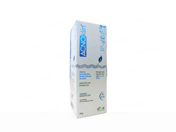 Vegetal Acnoklin Gel Face Wash contains salicylic acid and glycolic acid, known for their acne-fighting properties.