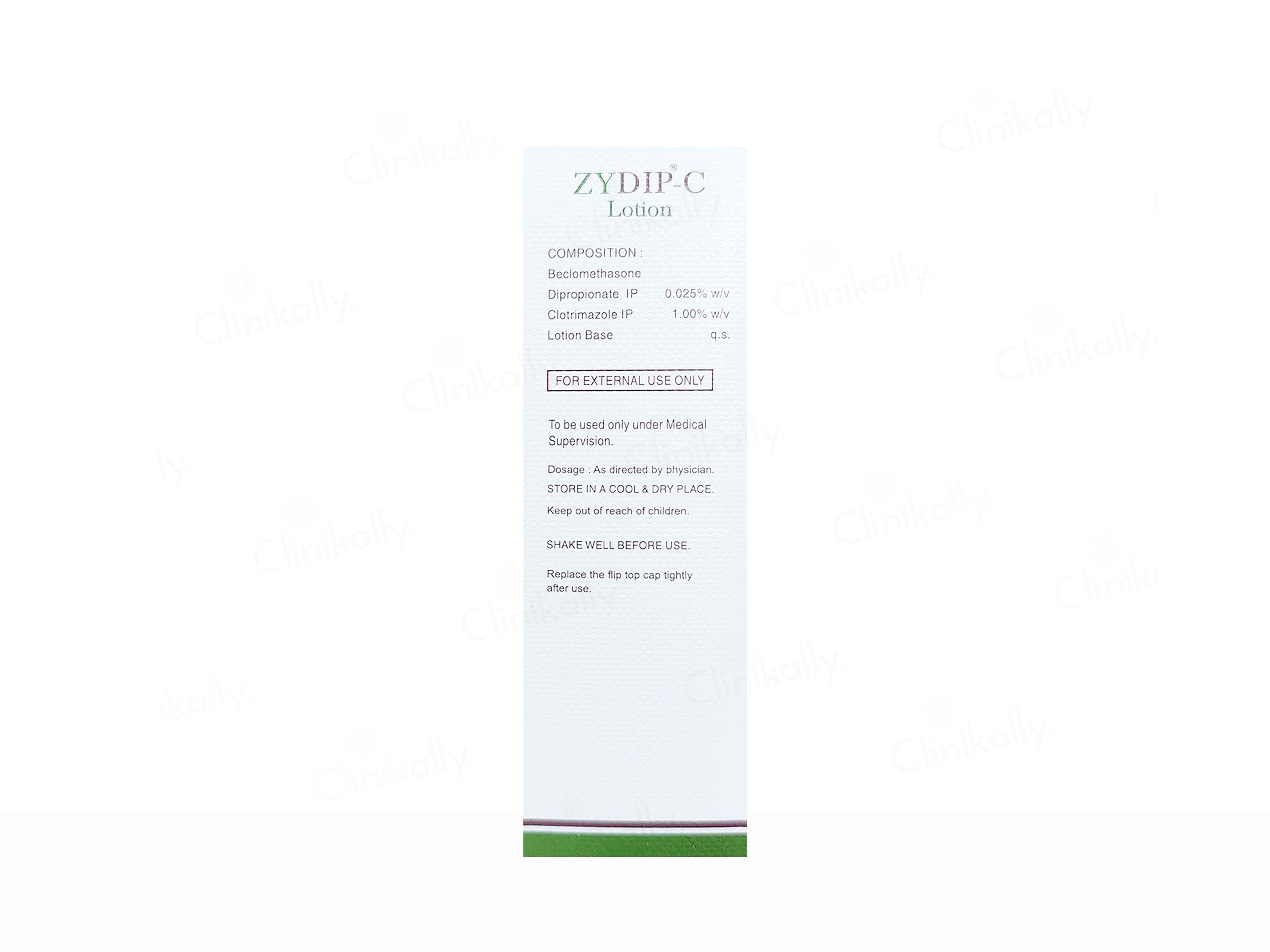 Zydip-C Lotion is a therapeutic lotion designed to provide relief from inflammation, itching, and redness associated with various skin conditions. Formulated with powerful corticosteroids and calming ingredients, this lotion effectively reduces symptoms of dermatitis, eczema, and psoriasis. Its lightweight, non-greasy formula absorbs quickly into the skin, providing long-lasting comfort and hydration. Suitable for all skin types, Zydip-C Lotion is ideal for daily use to maintain healthy, soothed, and balanced skin.